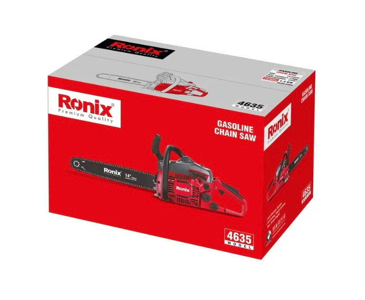 در اره درختبر بنزینی 1400 وات رونیکس مدل 4635، سیستم روغنکاری اتوماتیک زنجیر، با روغنکاری دائمی زنجیر، مانع از اصطکاک زیاد ساطور وزنجیر شده و برشی ایمنتر و موثرتر را تضمین میکند. سیستم احتراق جدید به روانتر شدن دستگاه کمک میکند. سیستم ترمز اضطراری در این اره نیز موجب کاهش خطر در حین عملیات برش میشود.