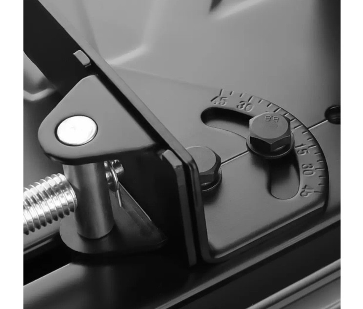 گونیای قابل تنظیم پروفیلبر مدل 5906 رونیکس، امکان برش در زوایای مختلف را با دقت بالا فراهم میکند. این گونیا تا زاویه ۴۵ درجه قابل تنظیم است و کاربر میتواند دو موقعیت متفاوت را برای برش انتخاب کند. قابلیت تنظیم زاویه، این دستگاه را برای برشهای مورب و کاریهای دقیقتر بسیار کاربردی میسازد. ساختار مقاوم گونیا در کنار سیستم قفل، موجب ثبات قطعه کار حین برش میشود.