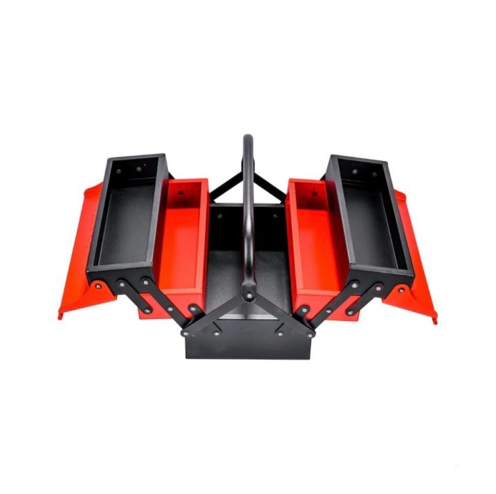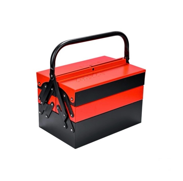 باز و بسته شدن این جعبه ابزار توسط درب اتوماتیک آن صورت می پذیرد که باعث میشود طبقات آن به راحتی باز و بسته شود. دسته جعبه ابزار آروا از جنس پلاستیکی و ABS می باشد. طراحی این جعبه ابزار به گونه ای است که تمامی ابزارآلات مد نظر را می توان درون آن قرار داد و یک جعبه ابزار 3 طبقه بسیار کاربردی می باشد . ترکیب رنگ جعبه ابزار 3 طبقه آروا بسیار منحصر به فرد و قرمز مشکی می باشد .