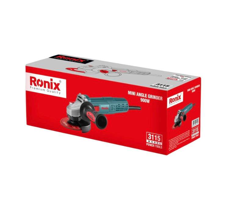 مینی فرز صنعتی 3115 در جعبه رنگی رونیکس و همراه با متعلقاتی مانند کاور صفحه برش، دستگیره کمکی، آچار و یک جفت ذغال به بازار ابزار ایران عرضه میشود.
